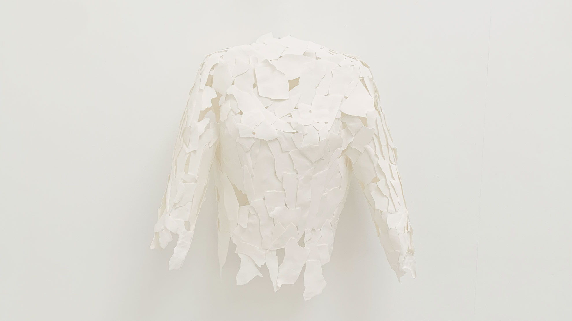 Armour of an Artist erforscht das Konzept des Schutzes und die Frage, wie widerstandsfähig dieser Schutz wirklich ist. Die Arbeit ähnelt einer Hülle oder Rüstung, doch ihre Zerbrechlichkeit bleibt sichtbar – was schützt, kann jederzeit zerbrechen. Ich bin fasziniert von diesem Spannungsfeld: zwischen Stärke und Verletzlichkeit, zwischen dem Wunsch, sich zu schützen, und der Offenheit, die künstlerische Arbeiten erfordern. Die Rüstung symbolisiert weniger Abwehr, sondern vielmehr einen Zustand ständiger Auseinandersetzung.